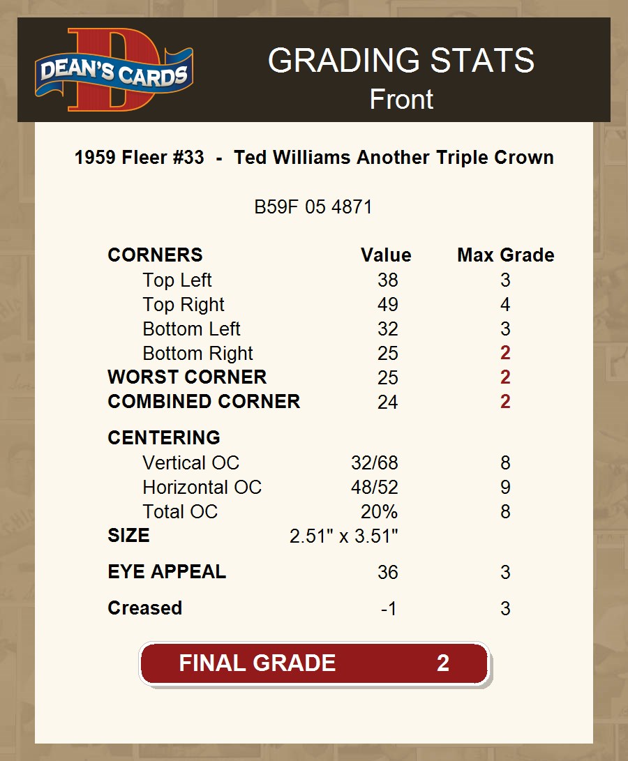 1959 Fleer #33 - Ted Williams Another Triple Crown 2 - GOOD