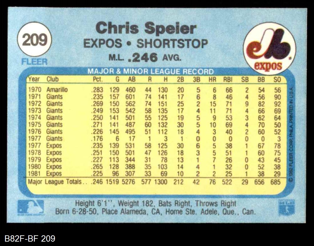 1982 Fleer #209 Chris Speier