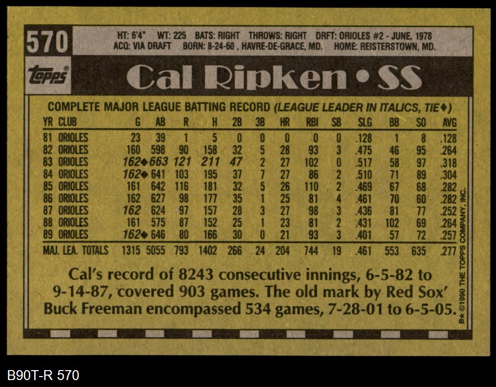 1990 Topps #570 Cal Ripken Jr.
