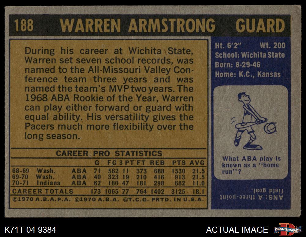1971 Topps #188 Warren Armstrong