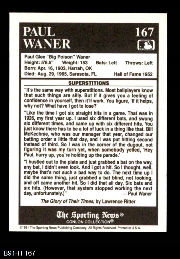 1991 Conlon #167 - Paul Waner Story 8 - NM/MT