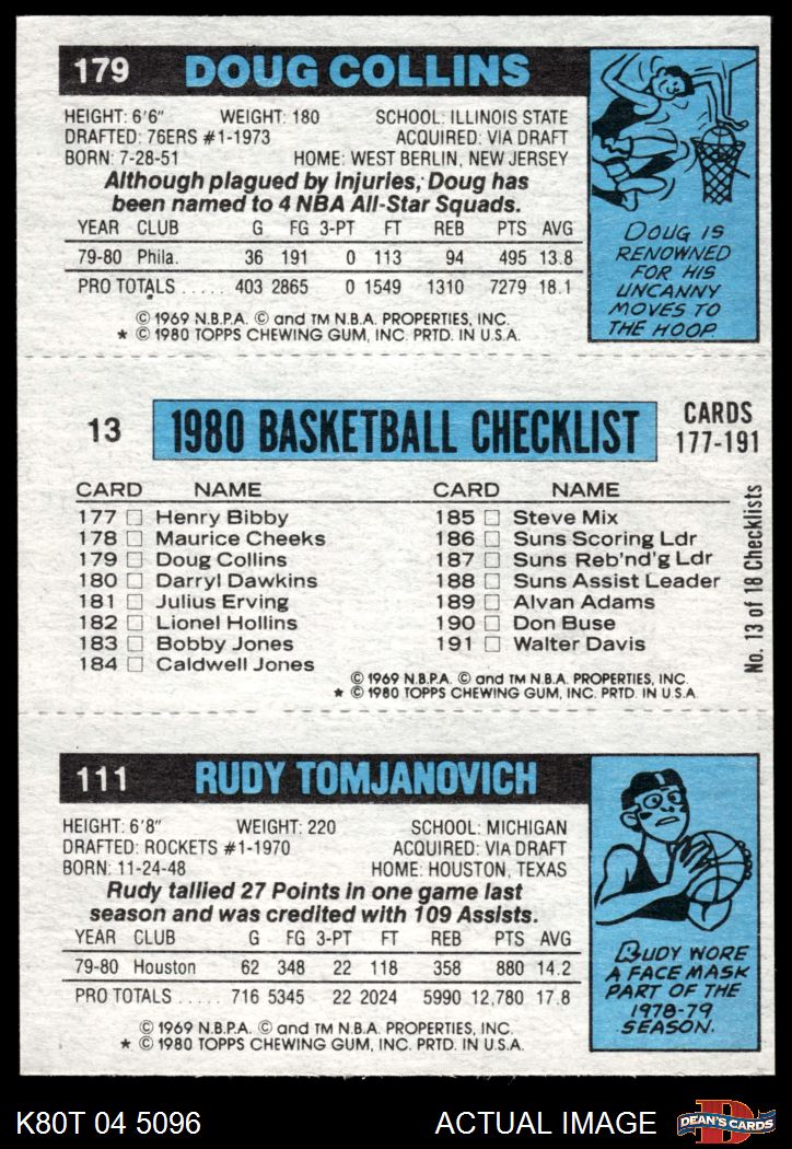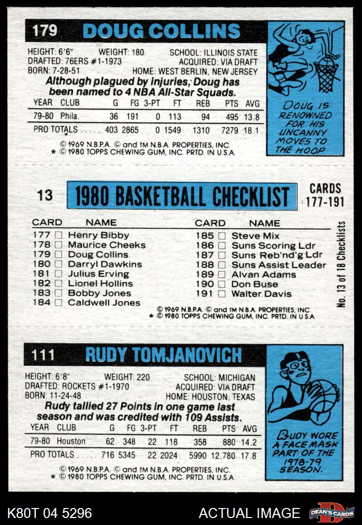 1980 Topps - Rudy Tomjanovich / Eddie Johnson / Doug Collins 111 / 13 / 179 7 - NM