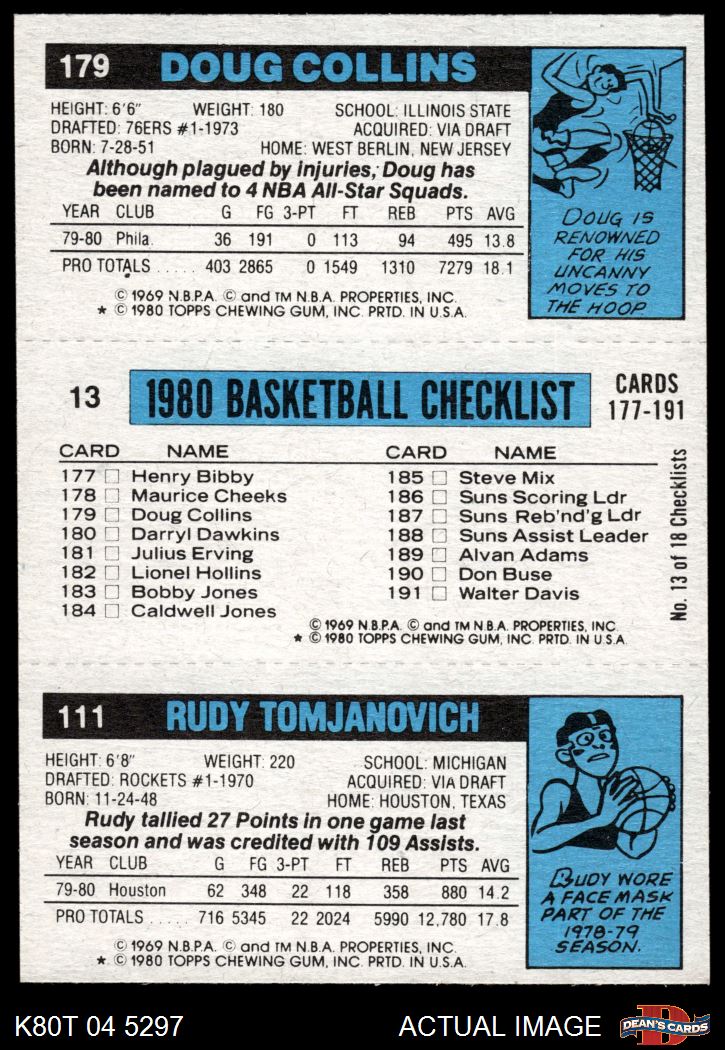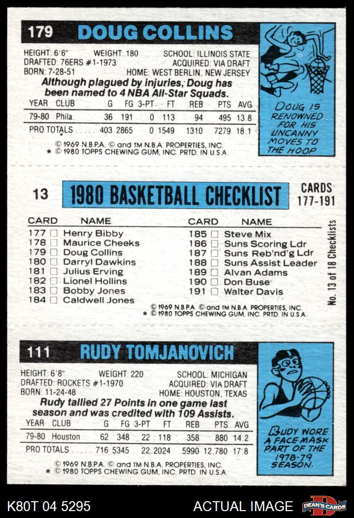 1980 Topps - Rudy Tomjanovich / Eddie Johnson / Doug Collins 111 / 13 / 179 8 - NM/MT