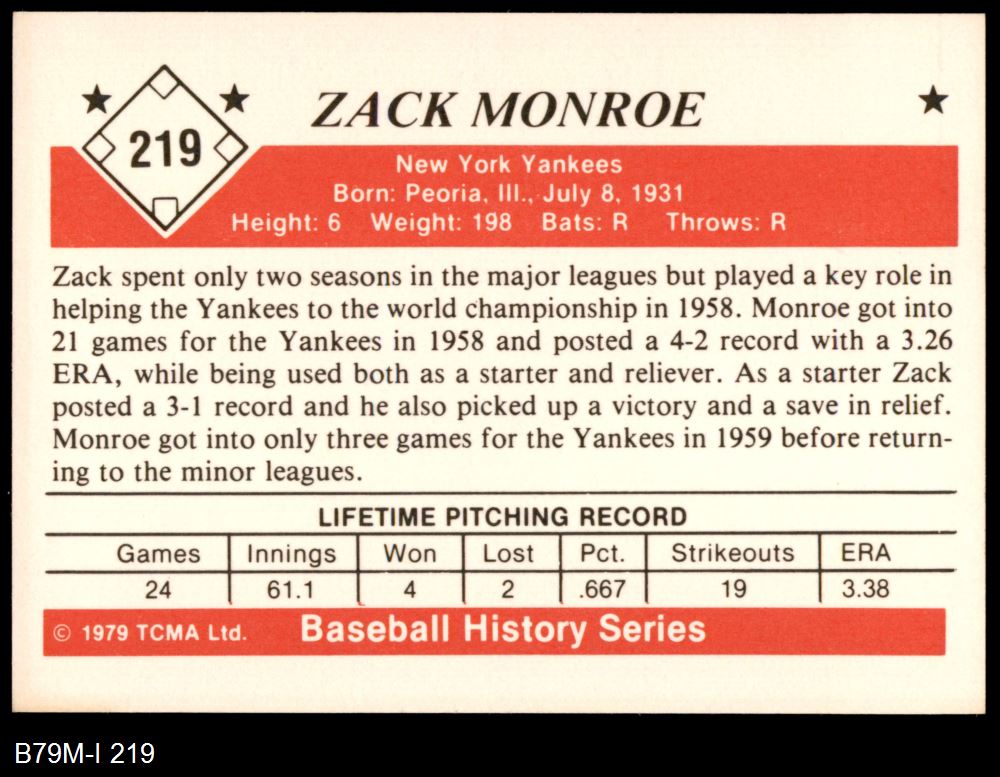 1979 TCMA The 1950's #219 Zack Monroe