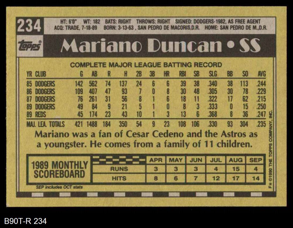 1990 Topps Baseball Cards (7,206 available)1990 Topps Reds (69 available)