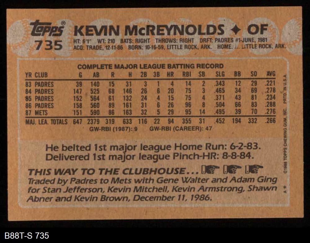 1988 Topps #735 Kevin McReynolds 8 - NM/MT