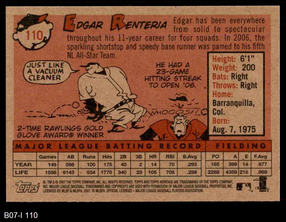 2007 Topps Heritage #110 Edgar Renteria 8 - NM/MT