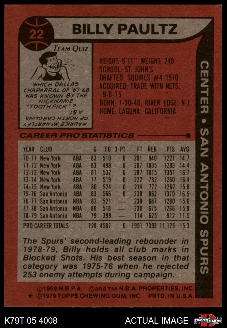 1979 Topps #22 Billy Paultz