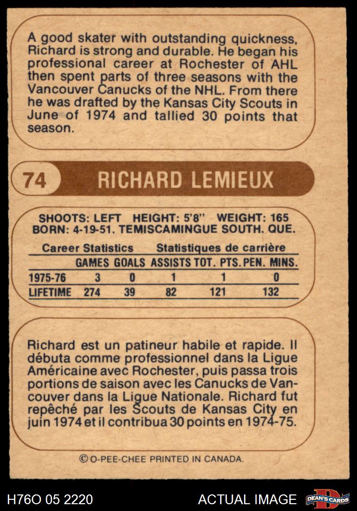 1976 O-Pee-Chee WHA #74 Richard Lemieux 7 - NM
