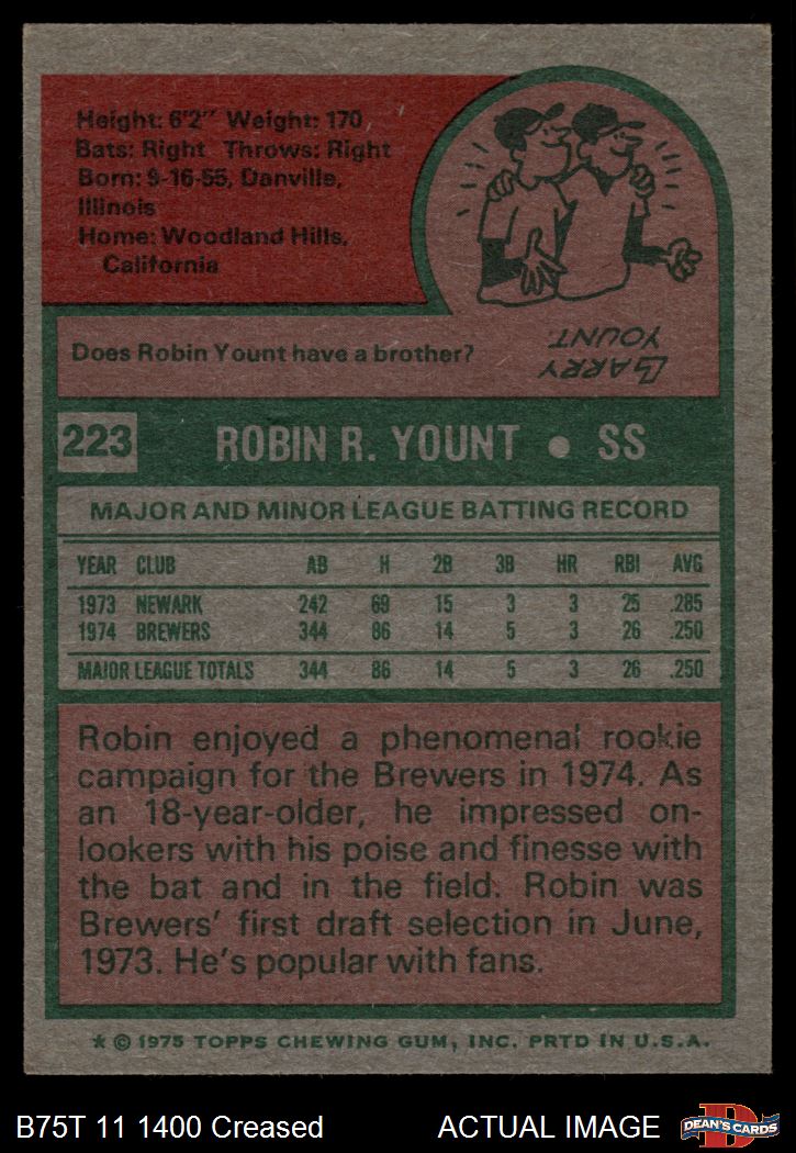 1975 Topps #223 Robin Yount 3 - VG