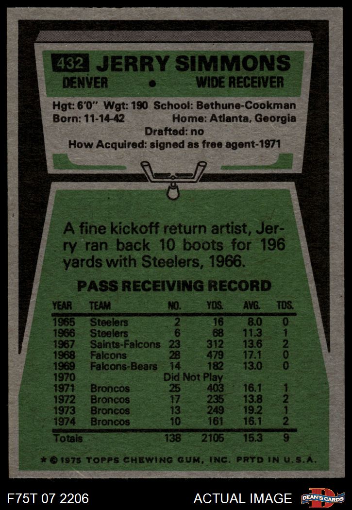 1975 Topps #432 Jerry Simmons 7.5 - NM+