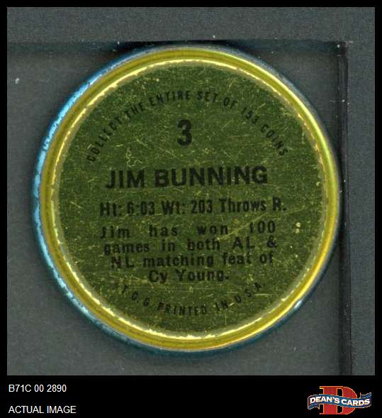 1971 Topps Coins #3 Jim Bunning 3 - VG