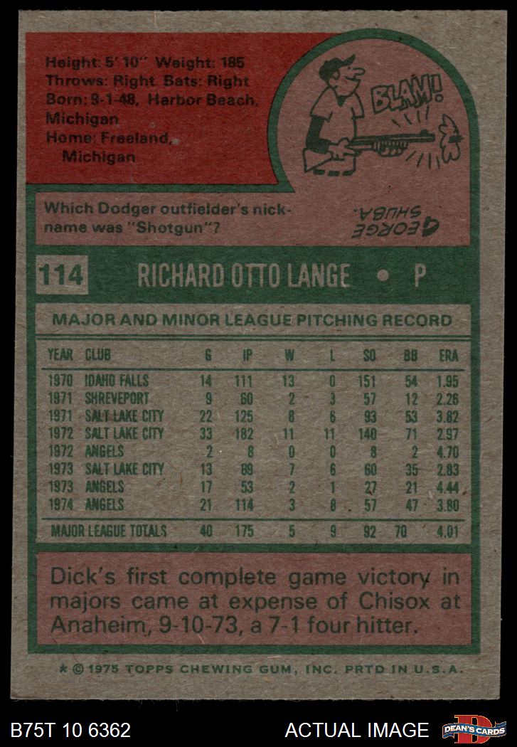 1975 Topps #114 Dick Lange 7 - NM