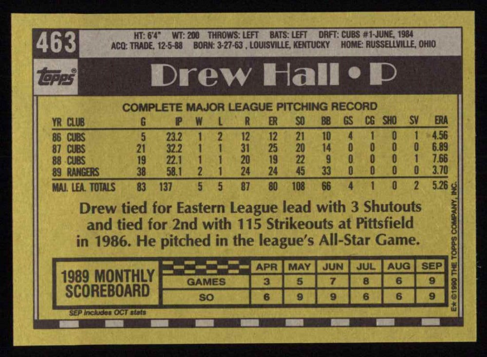 1990 Topps #463 Drew Hall 8 - NM/MT