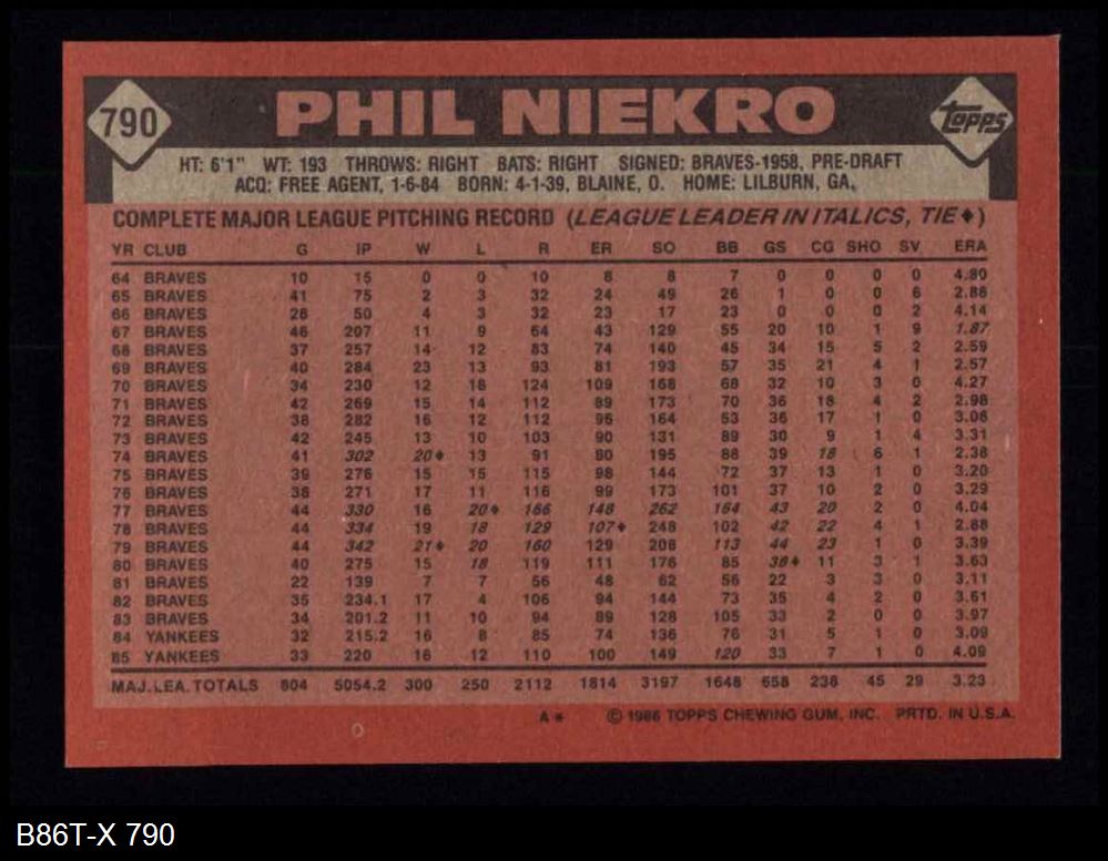 1986 Topps #790 Phil Niekro 8 - NM/MT