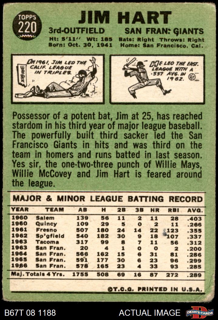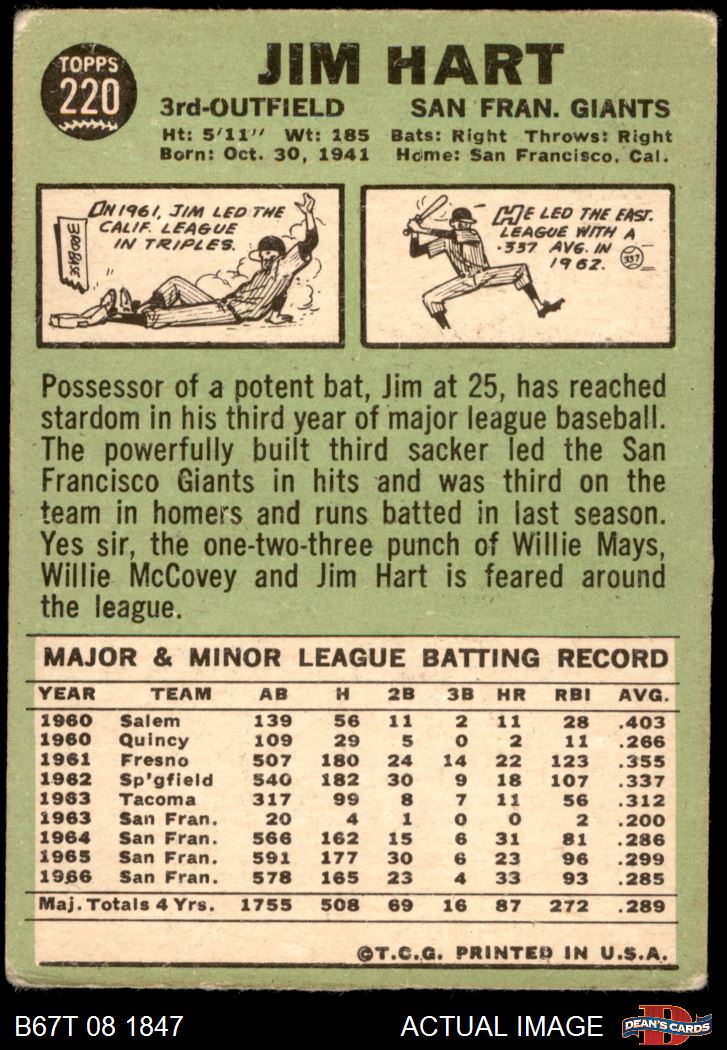 1967 Topps #220 Jim Hart AUTHENTIC