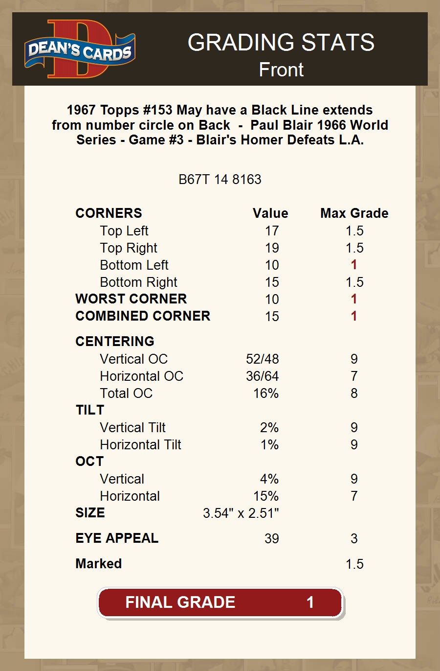 1967 Topps #153 May have a Black Line extends from number circle on Back - Paul Blair 1966 World Series - Game #3 - Blair's Homer Defeats L.A. 1 - POOR