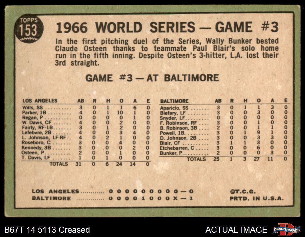 1967 Topps #153 May have a Black Line extends from number circle on Back - Paul Blair 1966 World Series - Game #3 - Blair's Homer Defeats L.A. 2.5 - GD+