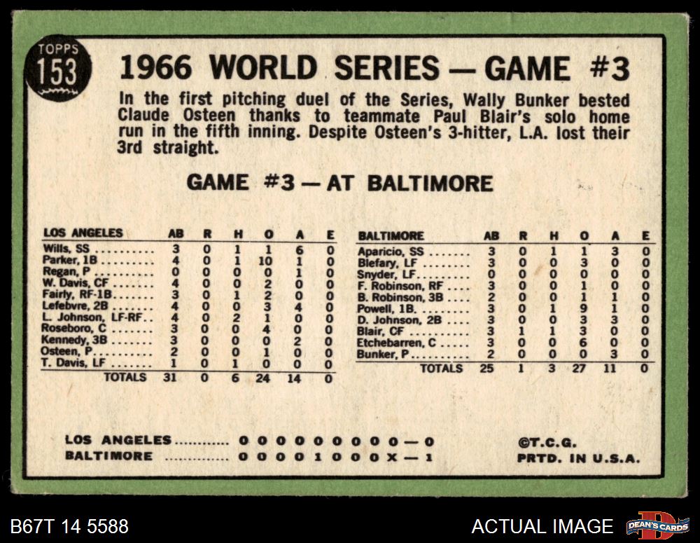 1967 Topps #153 May have a Black Line extends from number circle on Back - Paul Blair 1966 World Series - Game #3 - Blair's Homer Defeats L.A. 3 - VG
