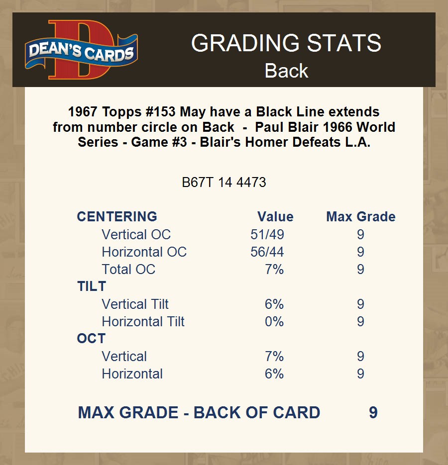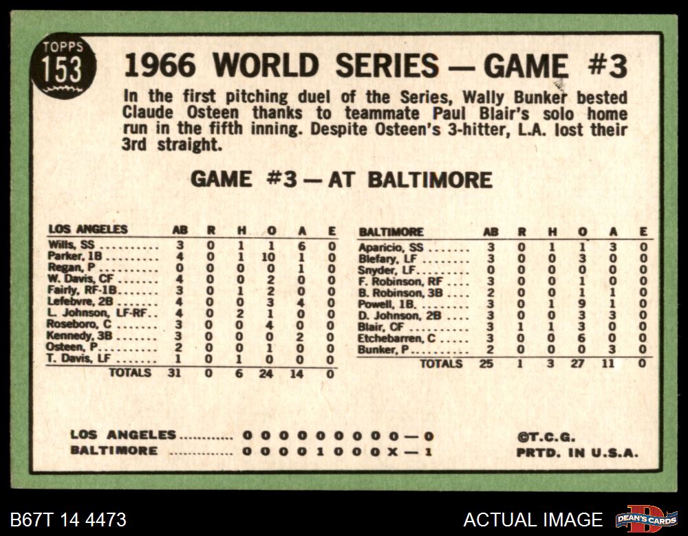 1967 Topps #153 May have a Black Line extends from number circle on Back - Paul Blair 1966 World Series - Game #3 - Blair's Homer Defeats L.A. 4 - VG/EX
