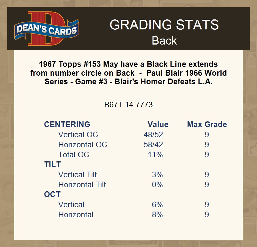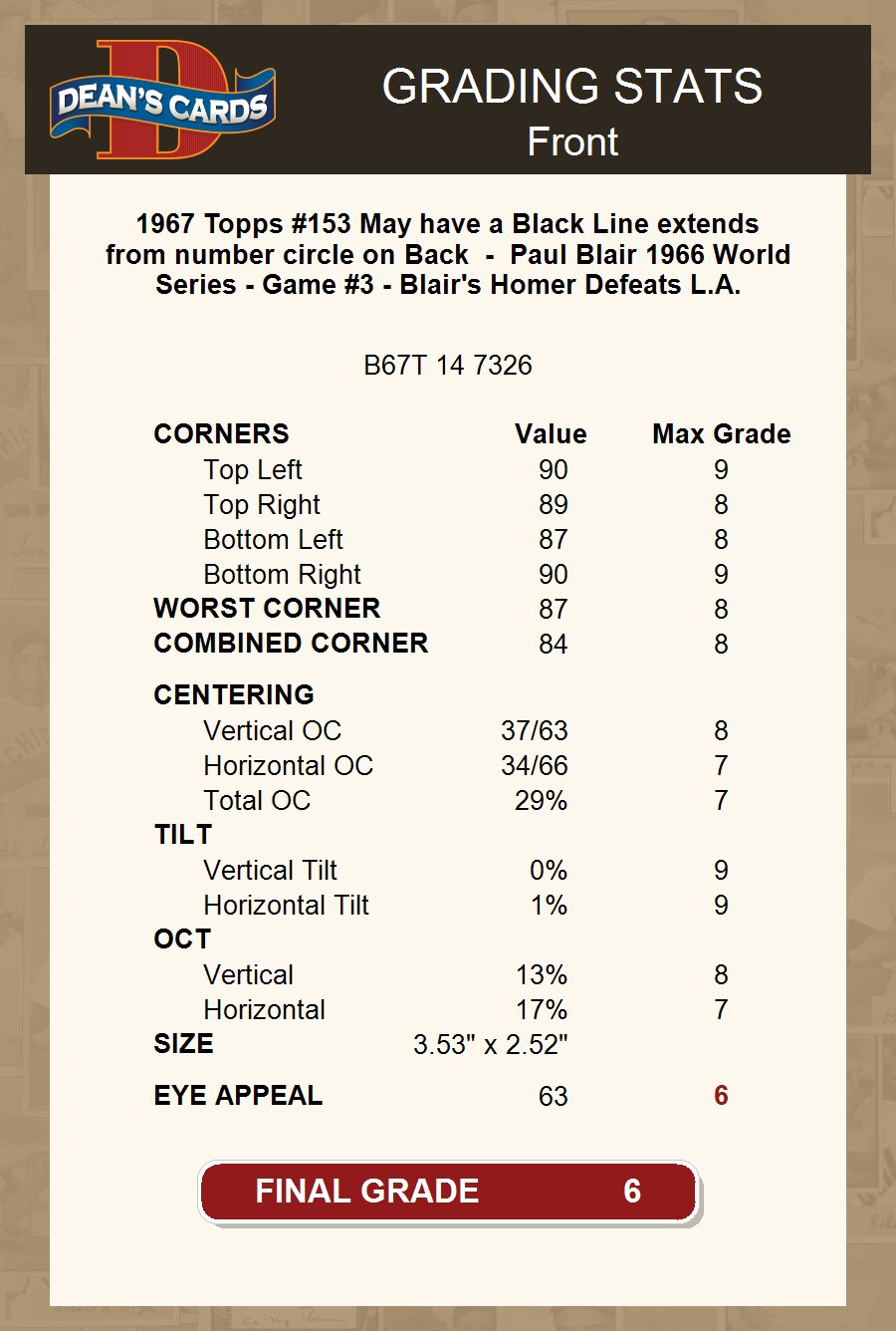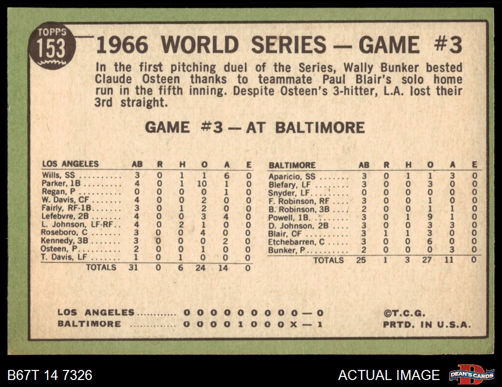 1967 Topps #153 May have a Black Line extends from number circle on Back - Paul Blair 1966 World Series - Game #3 - Blair's Homer Defeats L.A. 6 - EX/MT