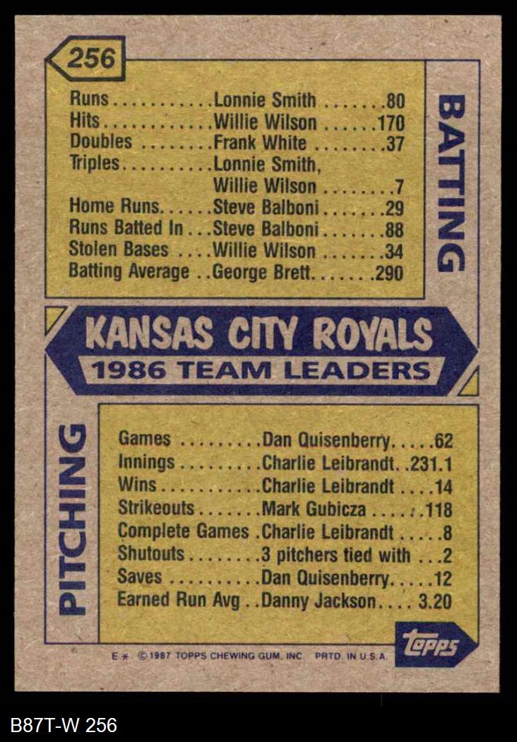 1987 Topps Baseball Cards (5,246 available)1987 Topps Royals (245 available)