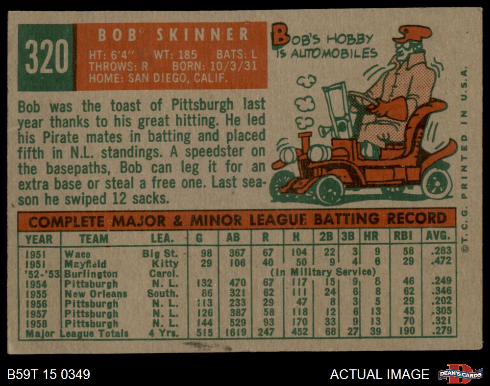 1959 Topps #320 Bob Skinner 1 - POOR