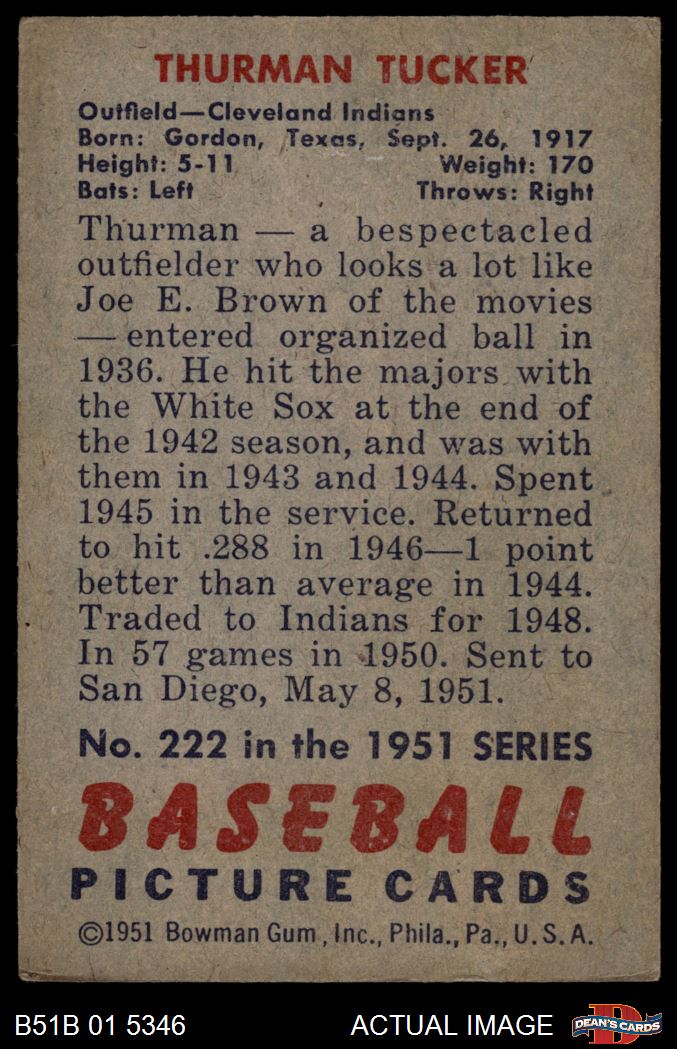 1951 Bowman #222 Thurman Tucker 3 - VG