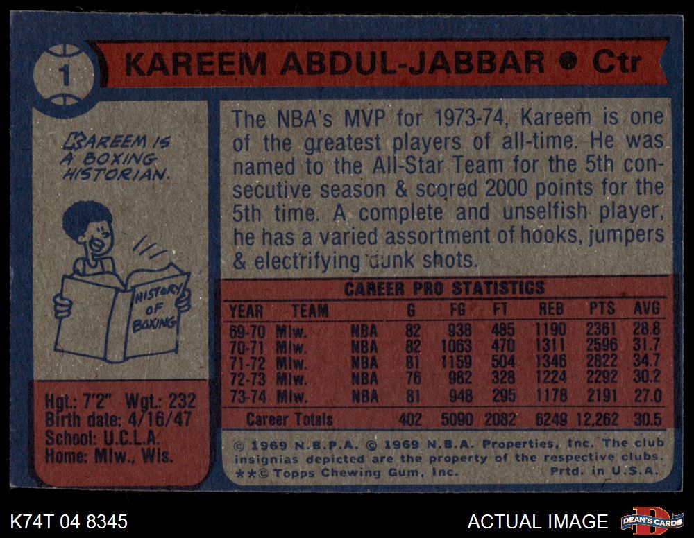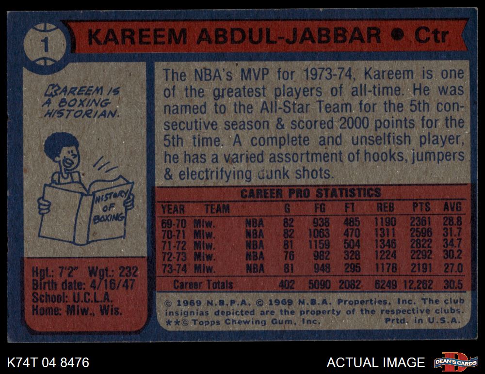1974 Topps #1 Kareem Abdul-Jabbar 5 - EX