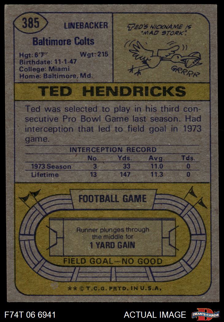1974 Topps #385 Ted Hendricks