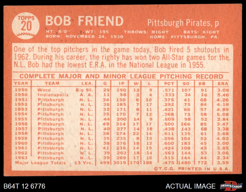 1964 Topps #20 Bob Friend 6 - EX/MT