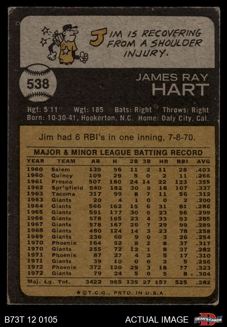 1973 Topps #538 Jim Ray Hart