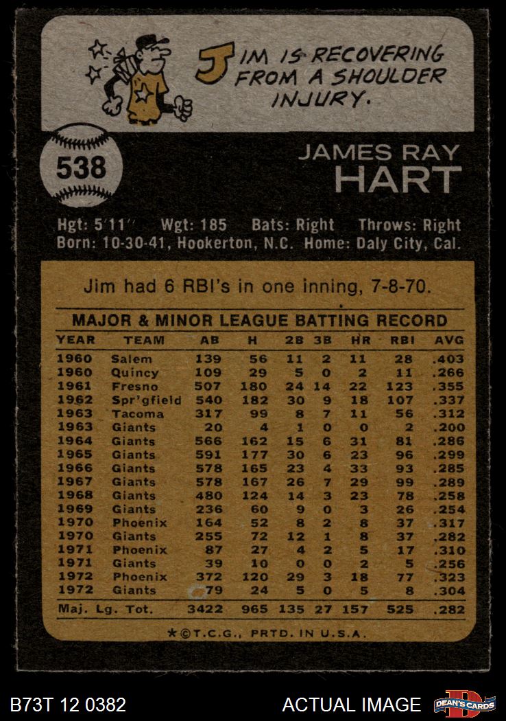 1973 Topps #538 Jim Ray Hart 3 - VG