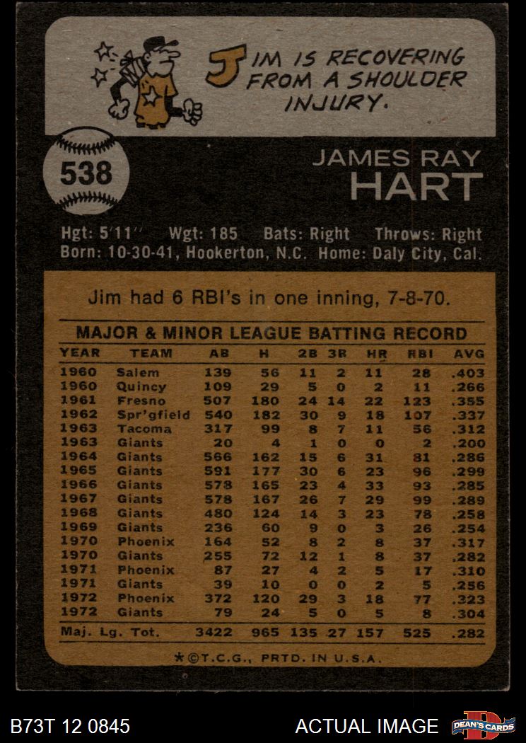1973 Topps #538 Jim Ray Hart 5 - EX