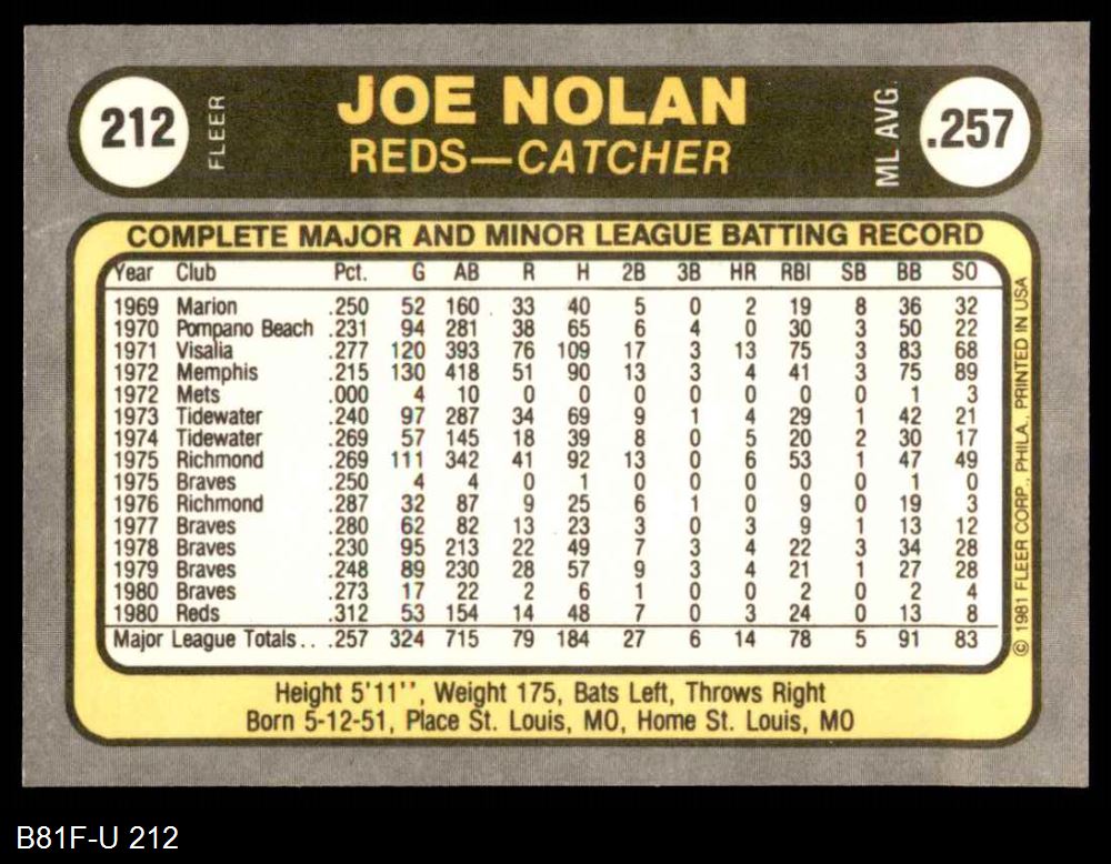 1981 Fleer #212 Joe Nolan