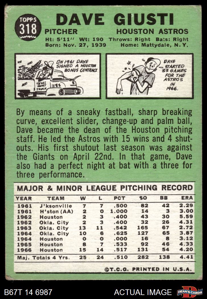 1967 Topps #318 Dave Giusti