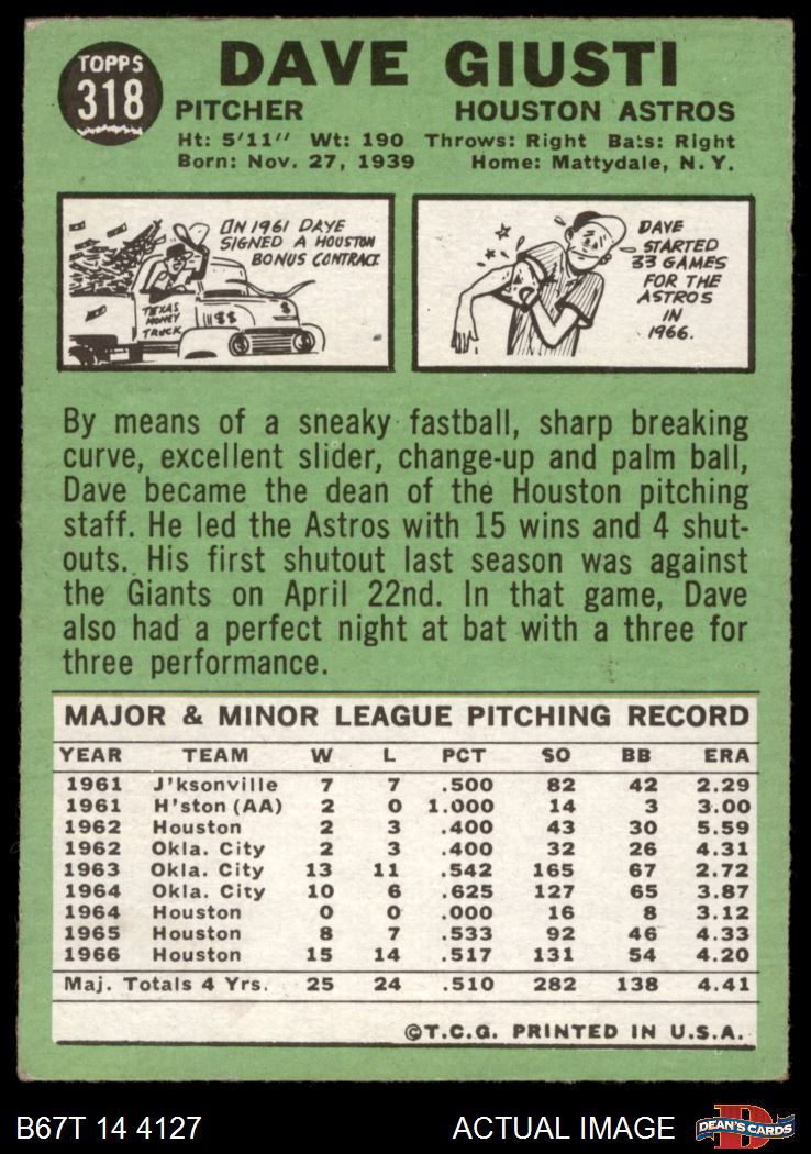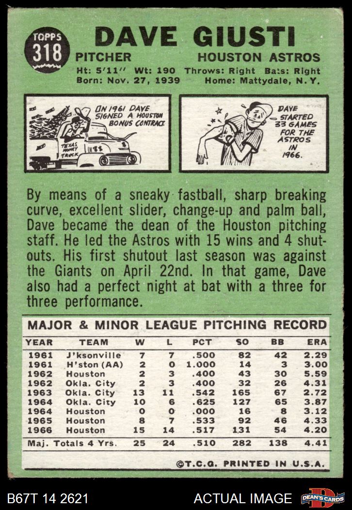 1967 Topps #318 Dave Giusti 2 - GOOD