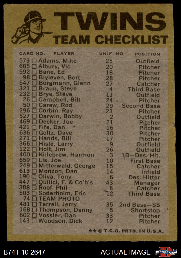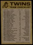1974 Topps  Minnesota Twins Red Team Checklist Front Thumbnail
