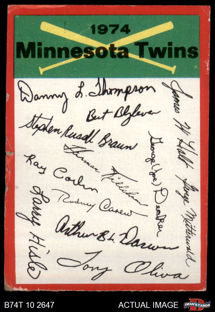 1974 Topps Minnesota Twins Red Team Checklist 1 - POOR