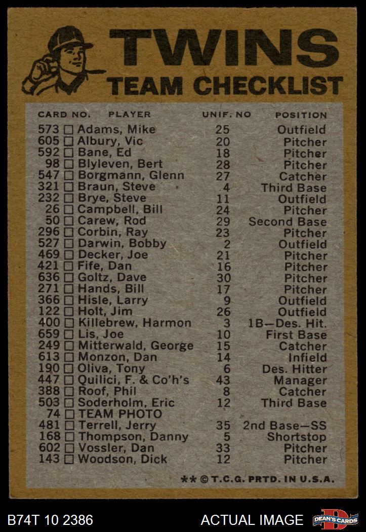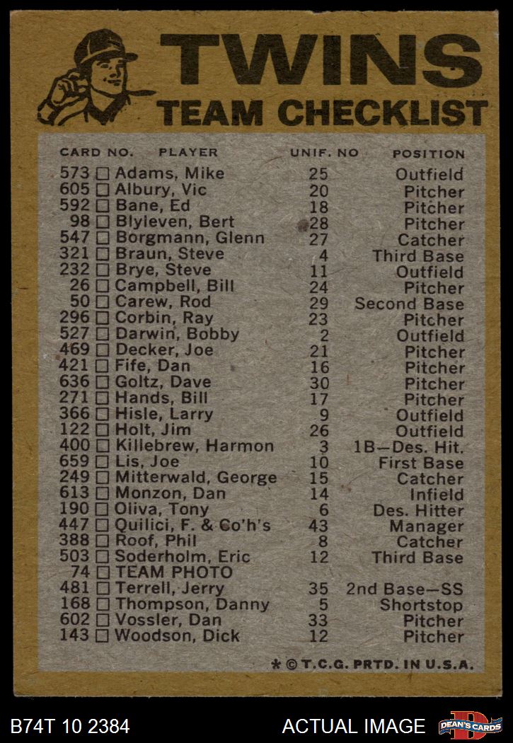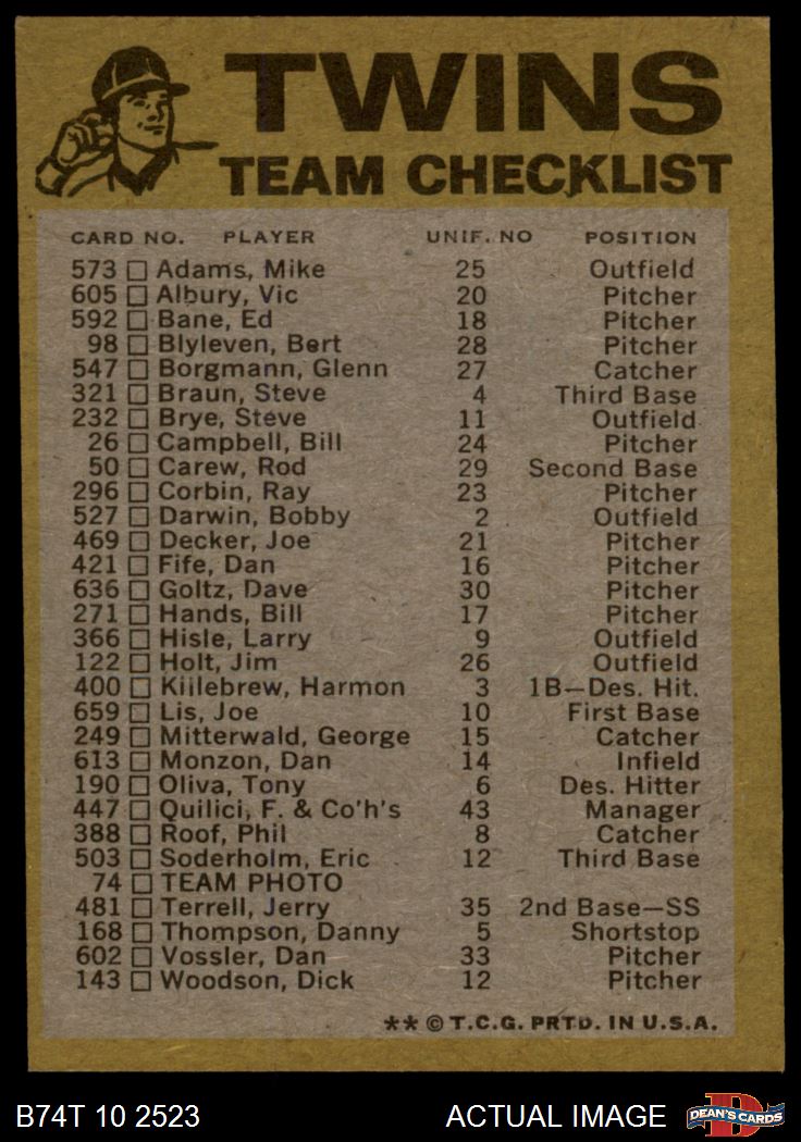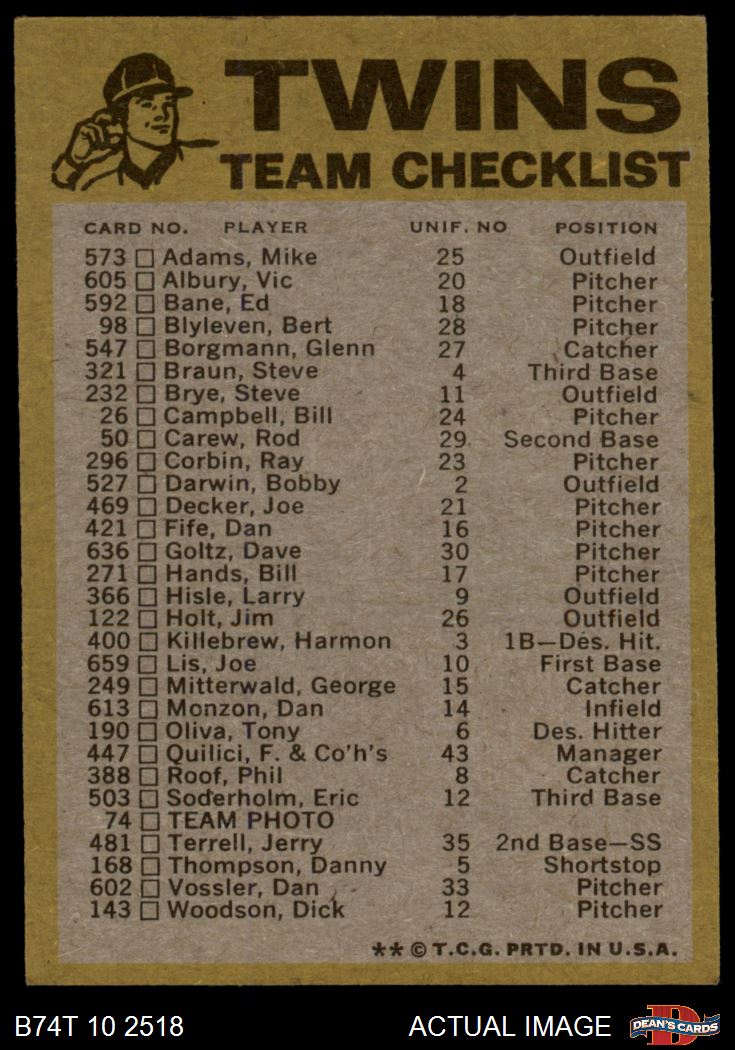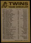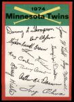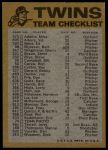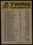 1974 Topps Minnesota Twins Red Team Checklist 5 - EX