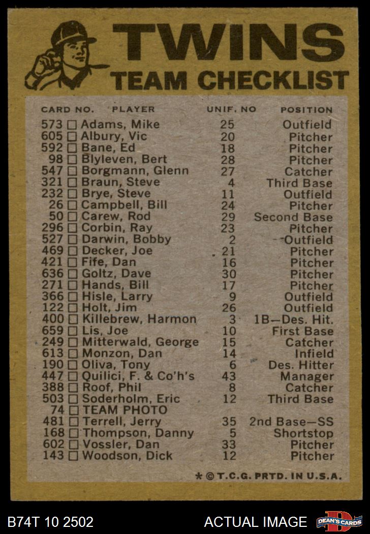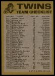 1974 Topps Minnesota Twins Red Team Checklist 6 - EX/MT