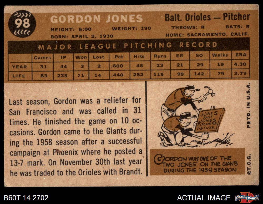 1960 Topps #98 Gordon Jones 1.5 - FAIR