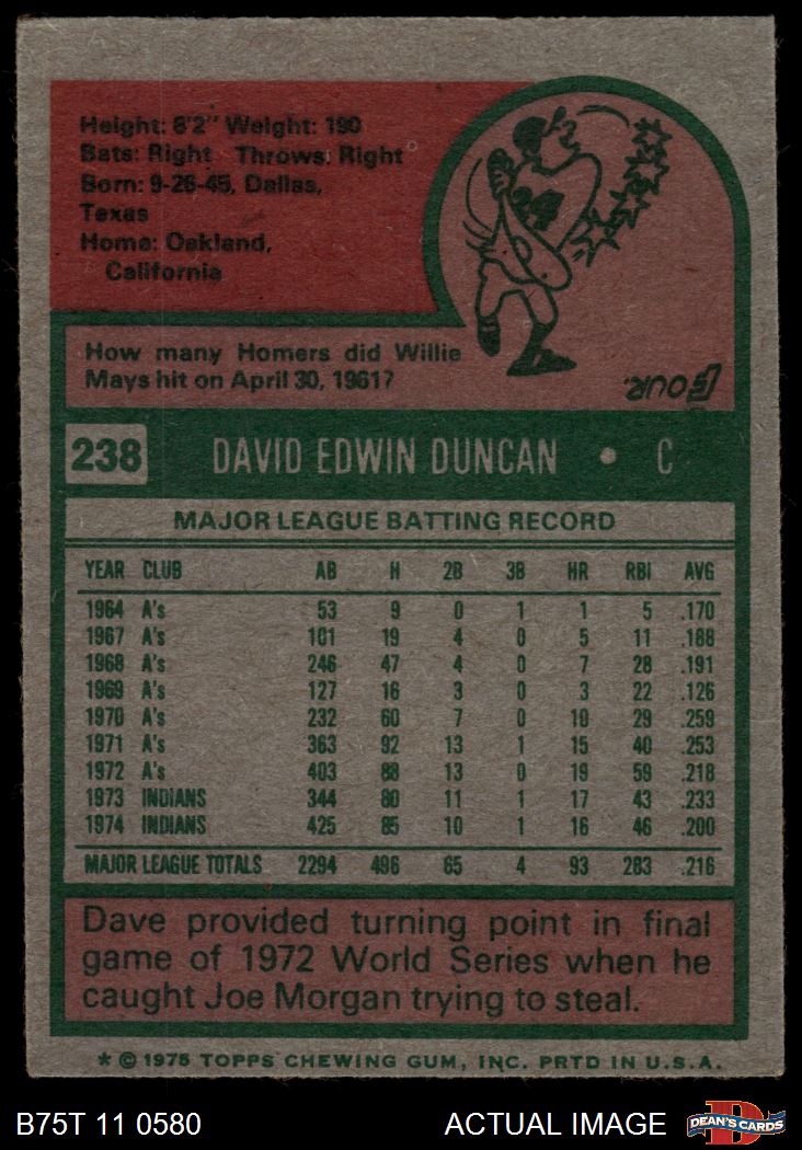 1975 Topps #238 Dave Duncan 3 - VG