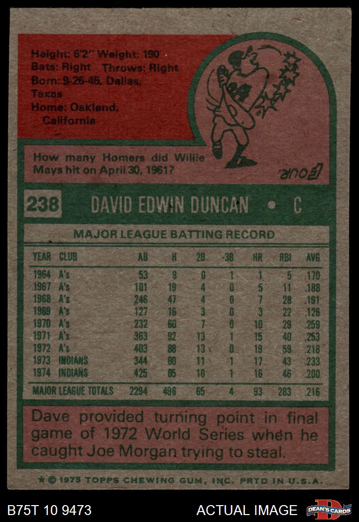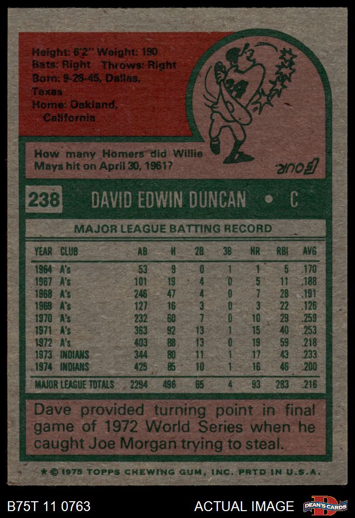 1975 Topps #238 Dave Duncan 5 - EX
