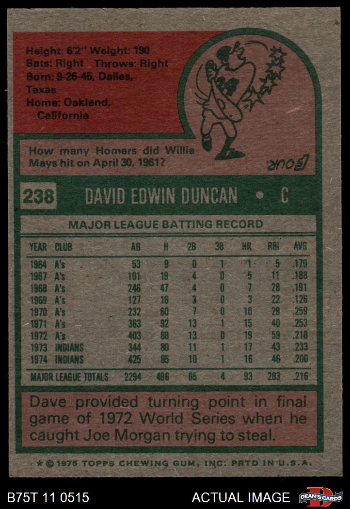 1975 Topps #238 Dave Duncan 6 - EX/MT