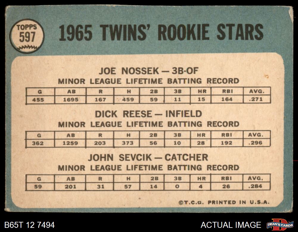 1965 Topps #597 - Dick Reese / Joe Nossek / John Sevick Twins Rookies 1.5 - FAIR