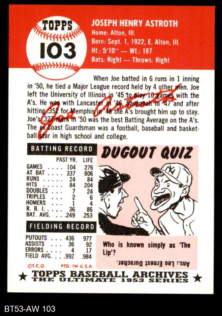 1953 Topps Archives #103 Joe Astroth 8 - NM/MT