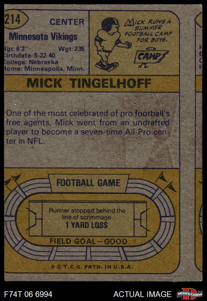 1974 Topps #214 Mick Tingelhoff Front Thumbnail