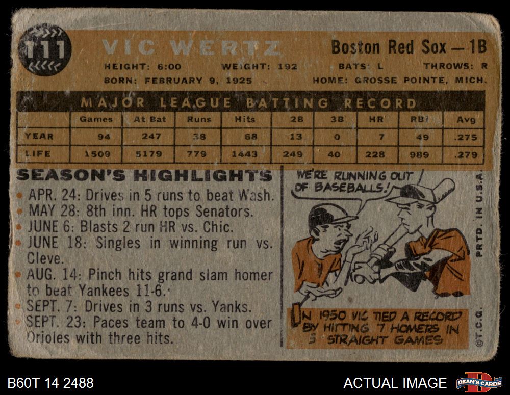 1960 Topps #111 Vic Wertz AUTHENTIC