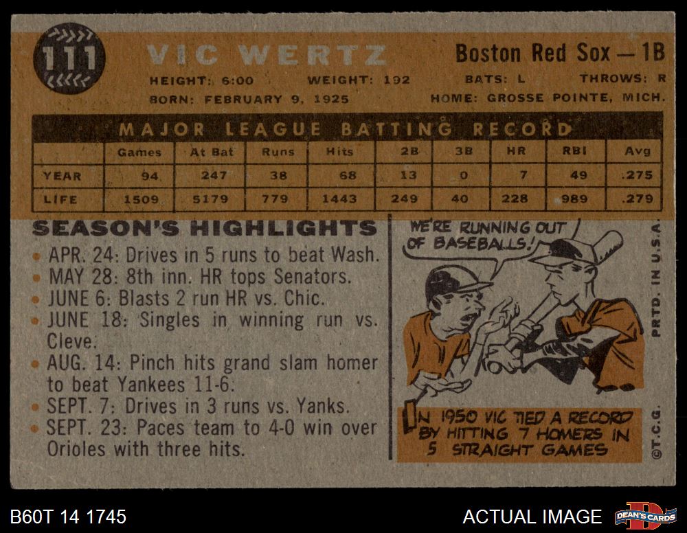 1960 Topps #111 Vic Wertz 3 - VG